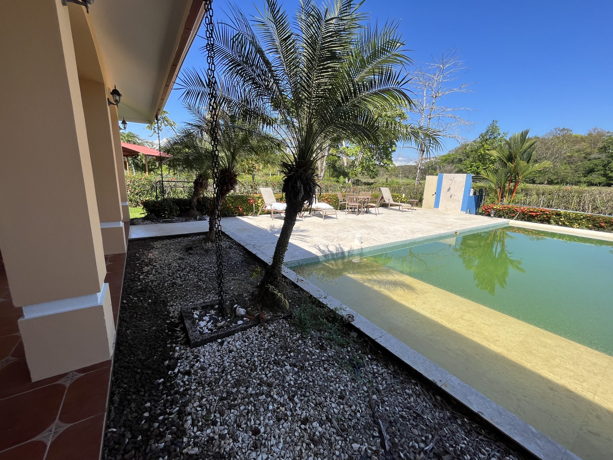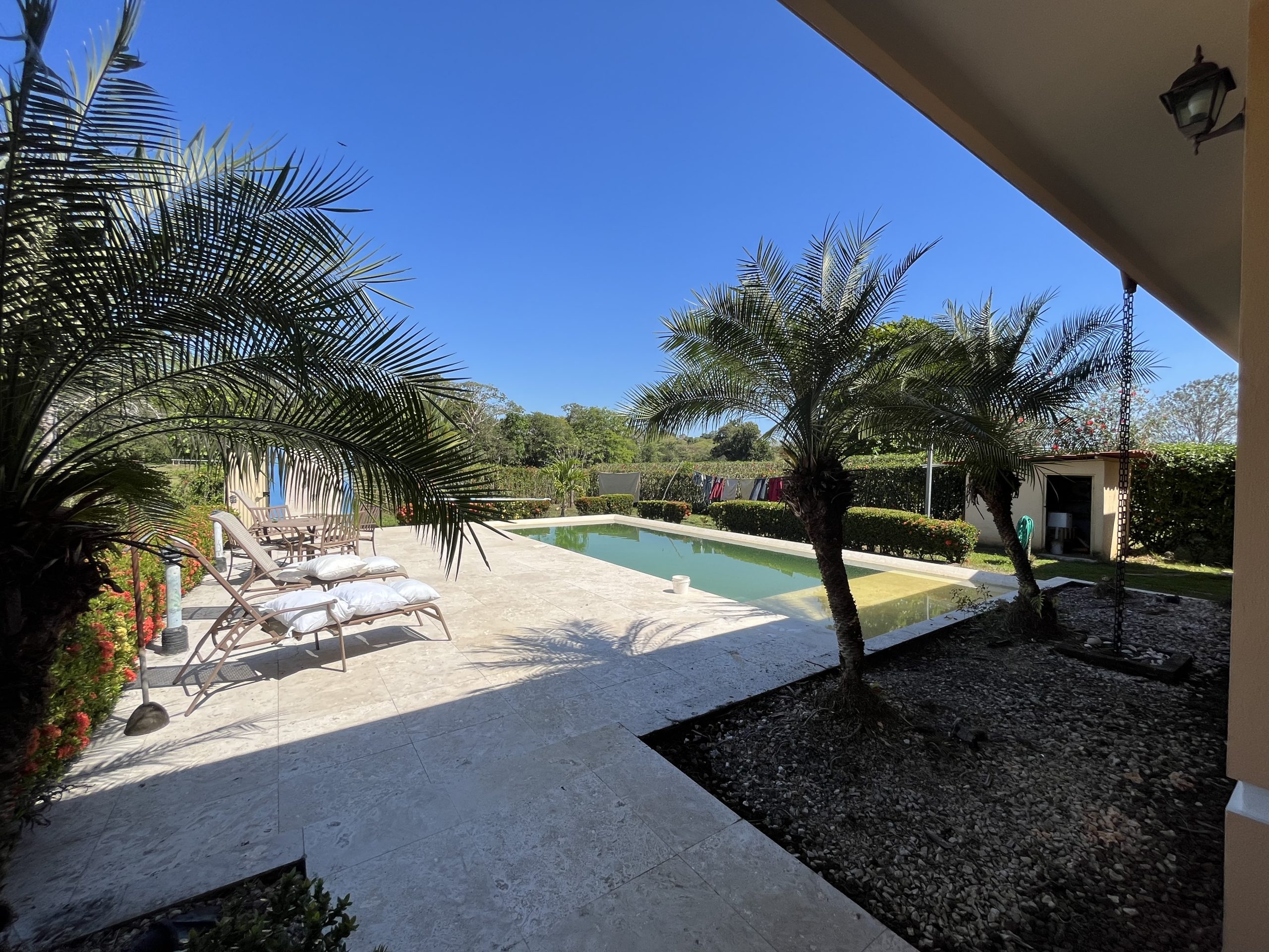 Relájate y disfruta del clima tropical en tu propia piscina, ubicada en un patio trasero rodeado de naturaleza. El lugar ideal para refrescarte, compartir con amigos y crear recuerdos inolvidables en un ambiente paradisíaco. -